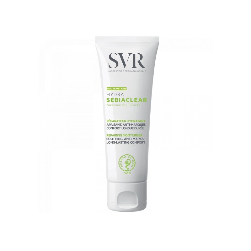 SEBIACLEAR Hydra es una crema hidratante especialmente formulada para pieles con tendencia acneica que están bajo tratamientos secantes. Este producto no solo alivia la irritación causada por la sequedad, sino que también repara la piel y reduce las imperfecciones y marcas residuales de color rojo y marrón. Con una textura mate que se absorbe rápidamente, proporciona un acabado cómodo, no graso y aterciopelado, convirtiéndola en una excelente base para el maquillaje. Su fórmula a pH fisiológico es adecuada para todas las pieles, incluso las más sensibles, y está diseñada para ser hipoalergénica y no comedogénica.