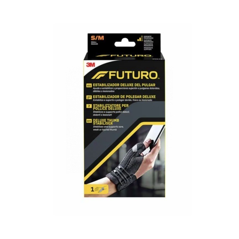 Ayuda a estabilizar y proporciona sujeción a pulgares doloridos, débiles o lesionados Ideal para: Actividades diarias, escritura de mensajes de texto, juegos Dos estabilizadores reforzados que ayudan a sujetar el dedo pulgar