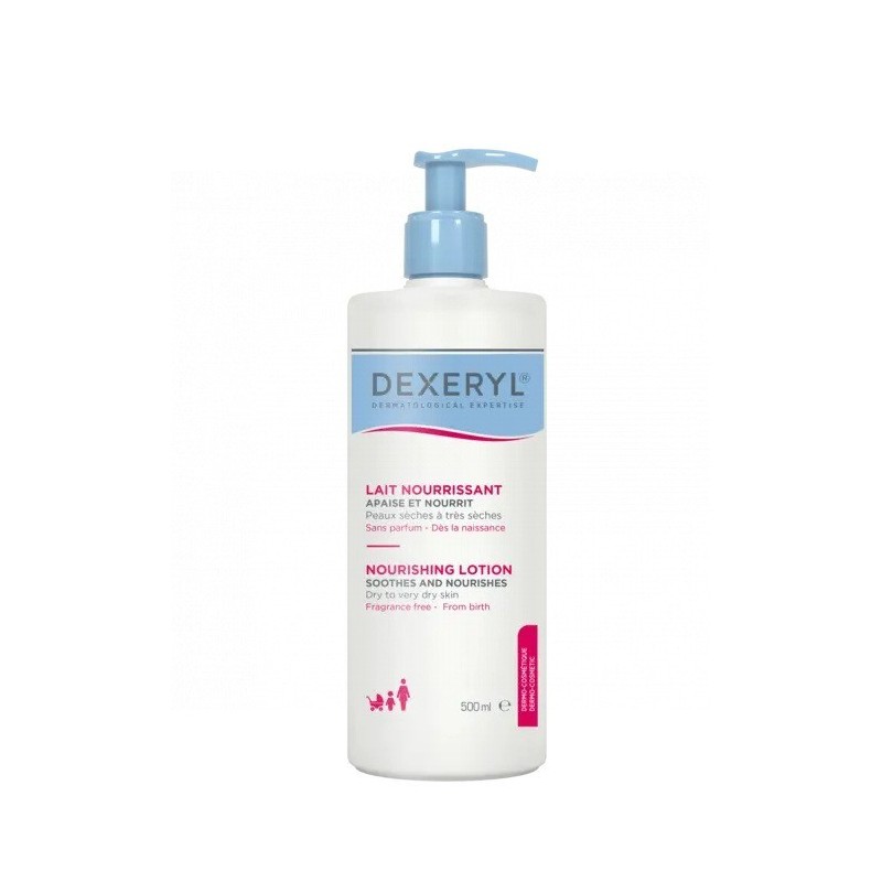 DEXERYL Loción Nutritiva está específicamente diseñada para pieles deshidratadas, sensibles, secas o muy secas, ofreciendo una textura fluida y ligera. Este cuidado "EMOLLIENT PLUS" garantiza una eficacia inmediata. El 95% de los usuarios notan una reducción de la tirantez desde la primera aplicación. Esta loción hidrata y nutre la piel en profundidad. Proporciona una nutrición intensa durante 24 horas, mejorando la capacidad de la epidermis para retener la hidratación y sintetizar lípidos. Enriquecida con ácido glicirretínico, calma la piel al instante. Su fórmula ligera se absorbe rápidamente, permitiendo una aplicación exprés a la vez que proporciona flexibilidad y confort, ideal para su aplicación en todo el cuerpo, incluido el rostro y las manos. Adecuada para su uso diario durante todo el año o en caso de deshidratación ocasional o estacional. Esta loción también es compatible con el maquillaje. Su frasco con dosificador de 500 ml garantiza un uso sencillo y práctico para toda la familia, incluidos los bebés desde el nacimiento. Testada bajo control dermatológico, esta loción responde a las exigencias de las pieles sensibles, ya que no contiene perfume, es hipoalergénica y no comedogénica, ofreciendo una experiencia de cuidado agradable y eficaz. Opta por DEXERYL Loción Nutritiva para una hidratación intensa, una nutrición duradera y una textura fluida y ligera. Para un cuidado completo de la piel seca o deshidratada, combínala con DEXERYL Shower. Ventaja Una verdadera proeza galénica: la textura fluida de una loción combinada con el poder altamente nutritivo de un bálsamo. Se absorbe rápidamente. Nutre durante 24 horas¹. Beneficios Calma inmediatamente Nutre 24 horas¹ Se absorbe rápidamente