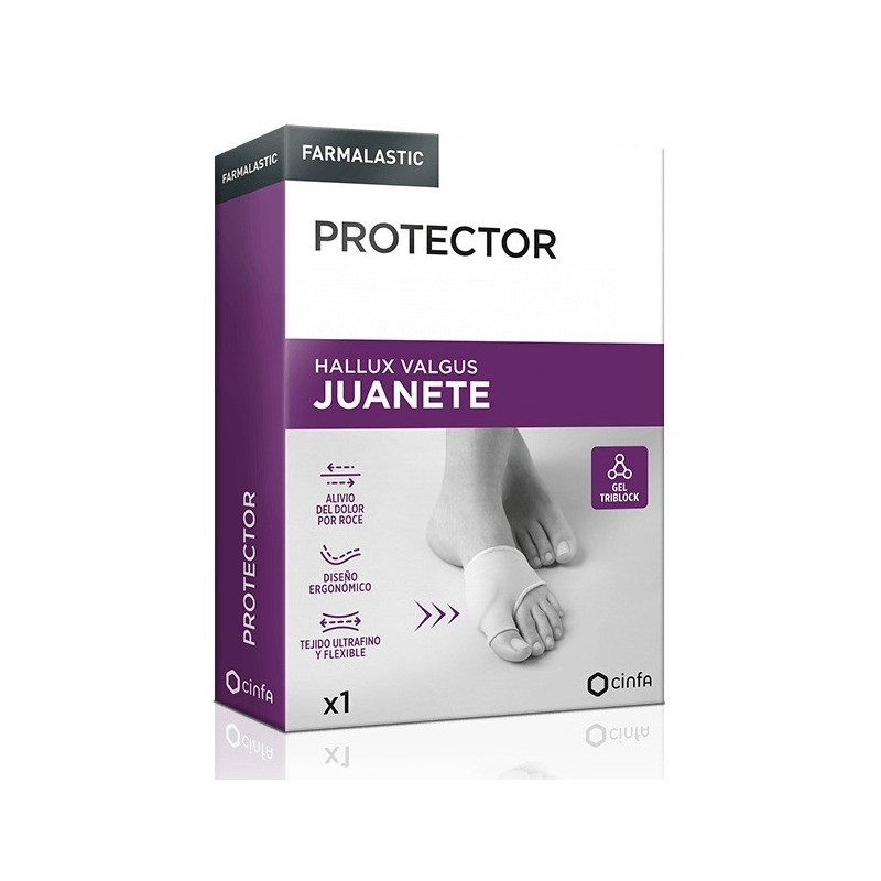 El Protector, para adultos, está indicado para personas que tienen juanetes incipientes o personas con juanetes avanzados y que ya no pueden mover el primer dedo del pie. Ayuda a aliviar el dolor de juanete provocado por el roce del calzado. Ayuda a reducir la presión y la fricción excesiva sobre el juanete. Evita la formación de durezas y callosidades. El protector de Gel Triblock está recubierto por un agradable tejido ultrafino y flexible que le aporta elasticidad para adaptarse al pie. Diseño ergonómico que facilita su colocación. El gel es multidireccional, suave y flexible, eliminando la fricción al caminar. Cuenta con memoria de recuperación, vuelve a su forma inicial tras su uso. Se puede reutilizar. Apto para utilizar con calcetines, medias y calzado habitual.